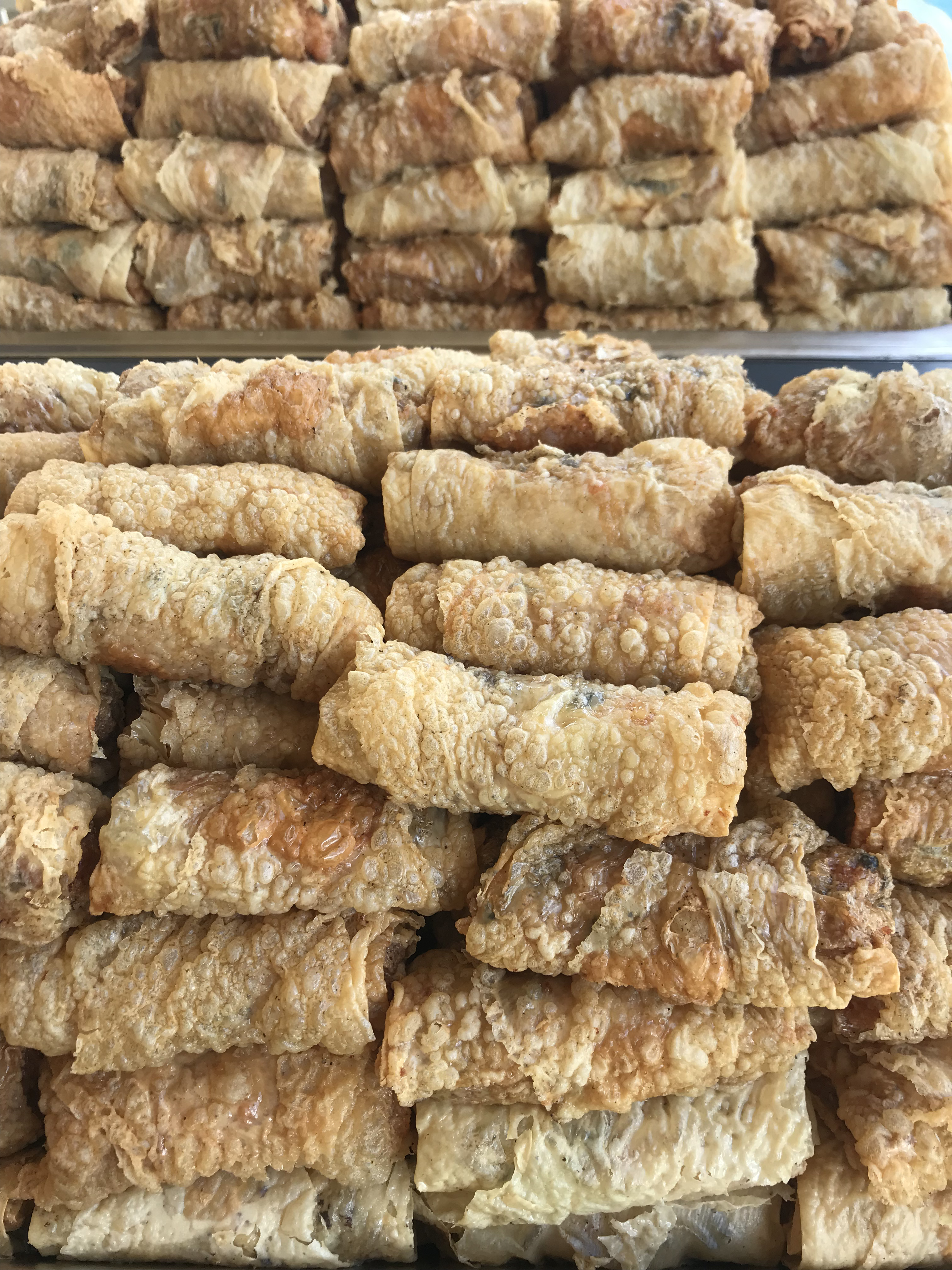 Pork, prawn, and vegetables wrapped in bean curd and served with a garlic oyster sauce.
